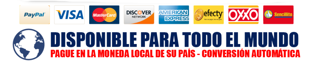 Aceptamos tarjetas de crédito, débito y otros métodos seguros según tu región. Tu compra está 100% protegida.